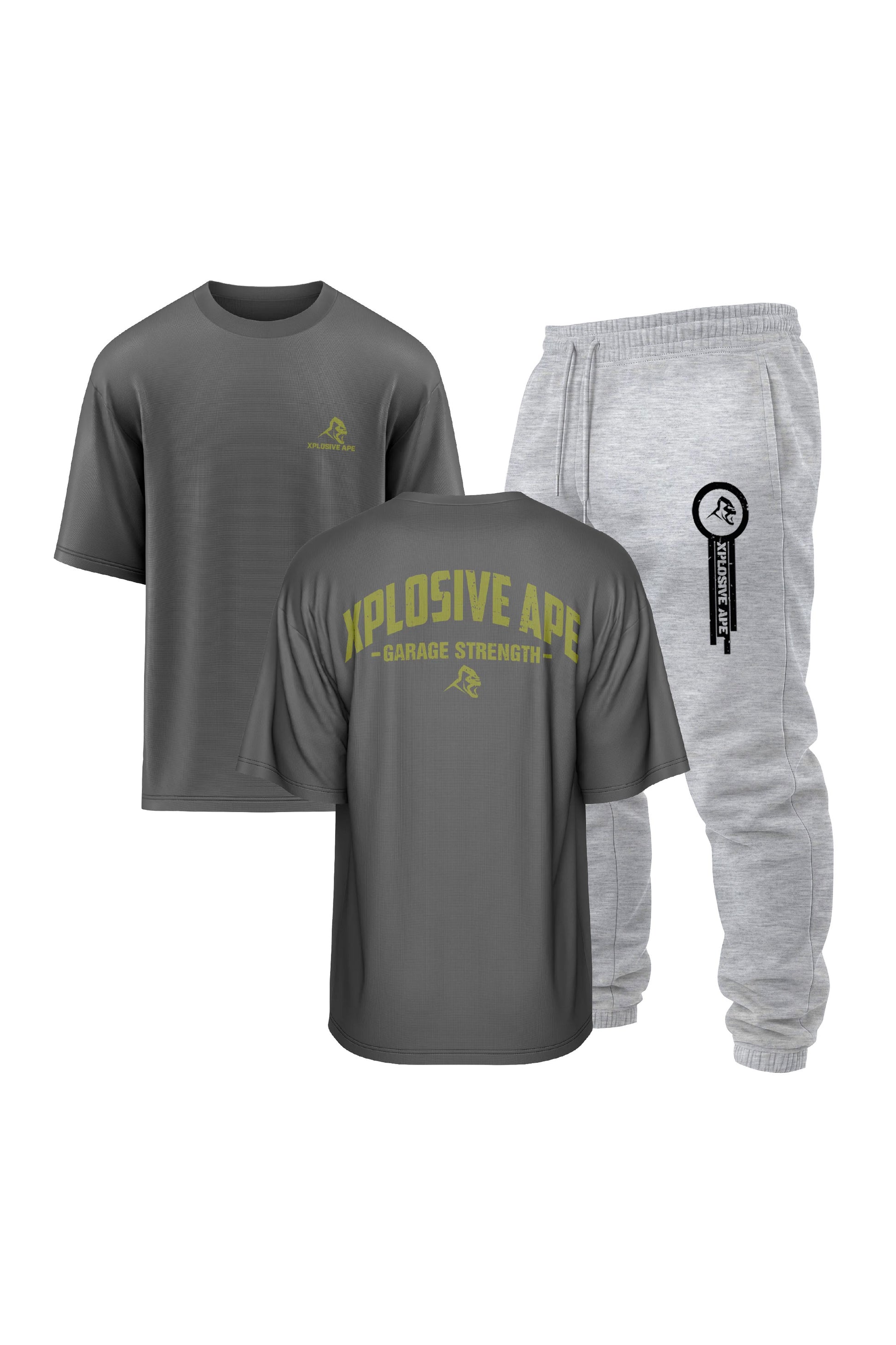 XAPE Garage Strength V2 Oversized Tee & Panelled V2 Joggers Combo - Charcoal/Ash Grey
